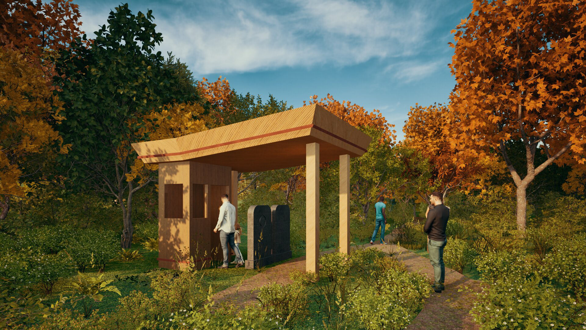 Het tankhuis is begaanbaar, waarbij er ruimte is voor één persoon om in te staan. Zo lijkt het van buiten alsof het tankhuis nog bemand is. Verder worden de gedenkstenen opgebouwd uit een houtenconstructie, met een keramische buitenkant. Zodat het zowel in look- en feel, als aanraking voelt als een koude grafsteen. Door de Folly komt een ollifantenpaadje dat aanzet tot het bezoeken ervan,als kleine detour van de wandelroute.